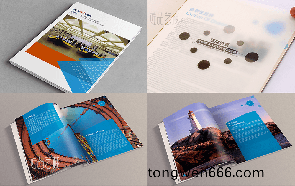 画(hua)册(ce)设(she)计中的统(tong)一(yi)性策略(lve),不能(neng)单纯(chun)理(li)解为(wei)版(ban)式(shi)统一(yi)性。而更(geng)多(duo)指(zhi)统(tong)一的风(feng)格(ge)或(huo)创(chuang)意元素(su),把(ba)整本(ben)画(hua)册贯(guan)穿起来(lai),形成整(zheng)本画(hua)册的(de)统(tong)一形象。如(ru)在(zai)中广(guang)核(he)的(de)企业画(hua)册(ce)设(she)计中(zhong),我(wo)们采用(yong)其(qi)核(he)裂(lie)变(bian)的(de)品(pin)牌元素,以(yi)灵(ling)活的(de)组(zu)合设计方式,不仅(jin)有效(xiao)提(ti)升(sheng)画册(ce)的(de)视觉形(xing)象和(he)统(tong)一性(xing),更能(neng)有效(xiao)传播其品牌(pai)经(jing)营(ying)理念。