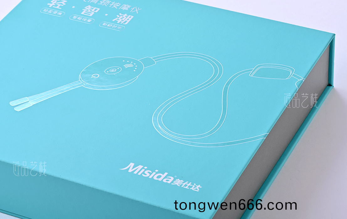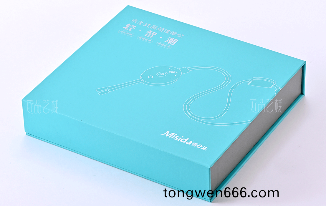 在该(gai)肩(jian)颈(jing)按摩(mo)仪(yi)包装盒定制(zhi)合(he)作中(zhong),以简(jian)约(yue)时(shi)尚(shang)的蓝色调(diao)为基,